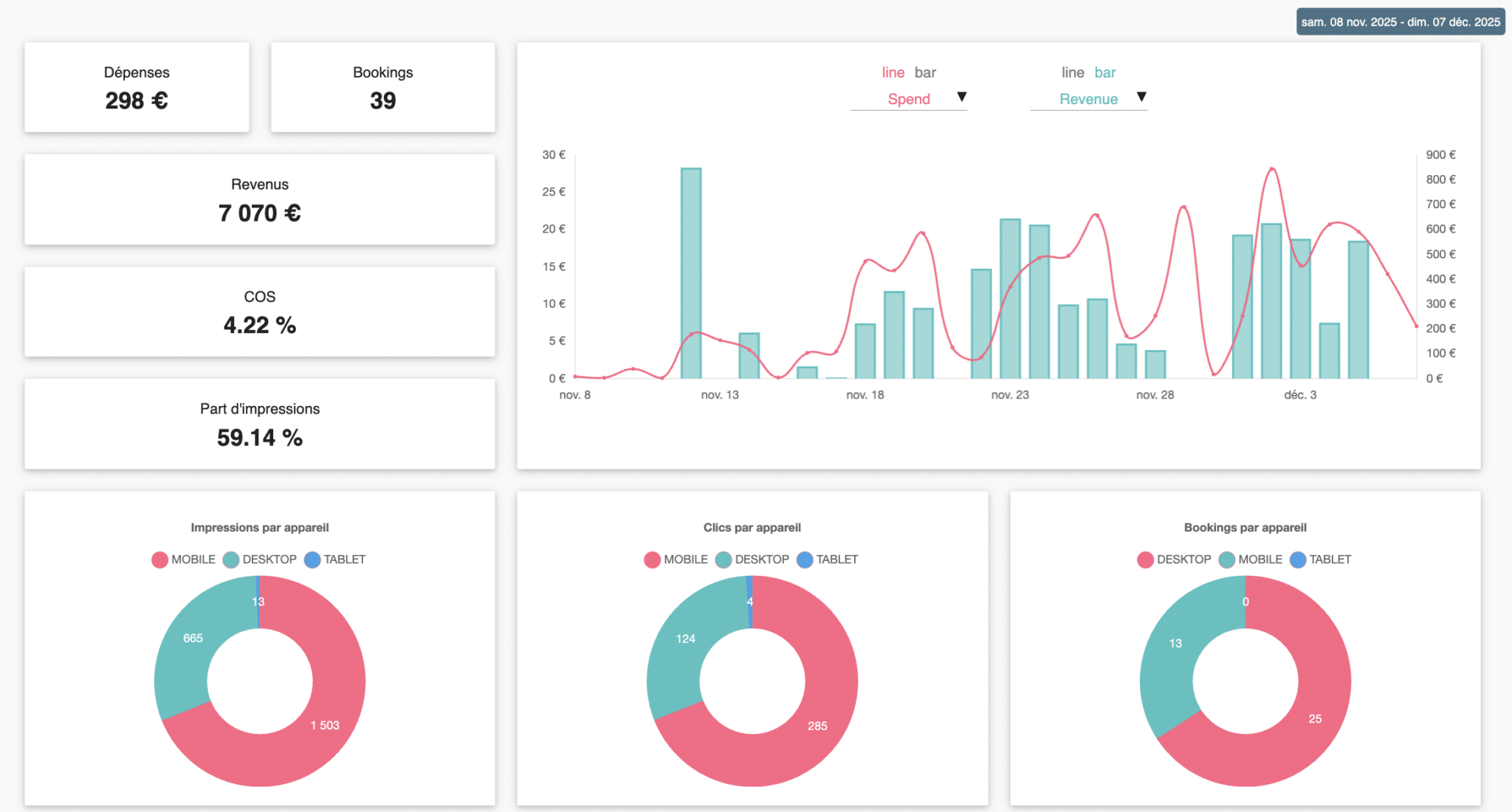 • Suivez vos budgets, définissez vos objectifs, modifiez vos campagnes. Vous décidez, LOCADS le fait pour vous.